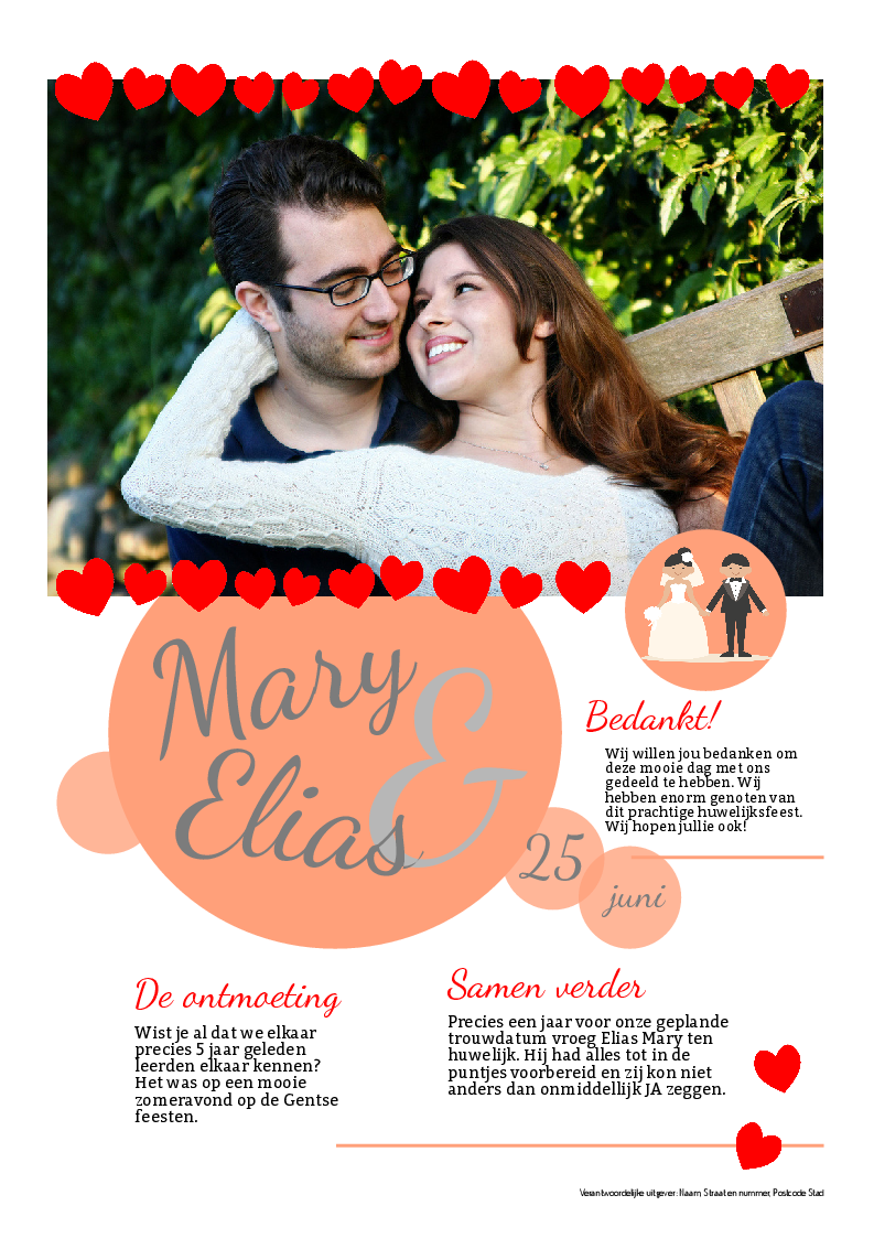 Het derde voorbeeld is happiedays.be, een website waar je voor een heel aantrekkelijke prijs een eigen unieke krant kan maken. Een krant van 16 pagina’s in één uniek exemplaar? Dat kan en kost je slechts een goeie 16 euro. Achter de schermen schuilt een ingenieus raderwerkje waarbij jouw krant tussen heel wat andere kranten gedrukt wordt en er haast geen manueel werk meer bij komt kijken.