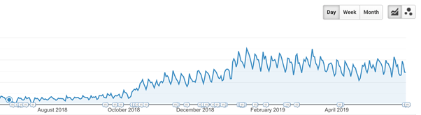 Het resultaat? In juni 2018 lag het verkeer rond de 120 SEO bezoekers per dag. In februari 2019 werd dit verkeer opgekrikt naar 1300 SEO bezoekers per dag. Het organisch verkeer is dus met een factor van 10 gestegen.