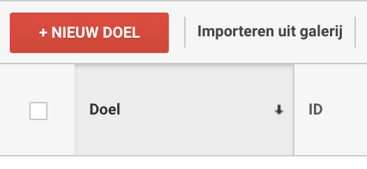 - Als je een nieuw doel wilt aanmaken, klik op ‘+ NIEUW DOEL’. Opgelet: je kan maximum 20 doelen instellen in Google Analytics. Als je deze knop niet ziet staan, heb je waarschijnlijk je maximum aantal doelen bereikt.
