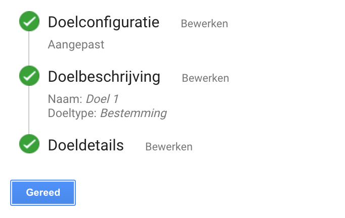 - Je krijgt opnieuw alle stappen te zien om je doel in te stellen: